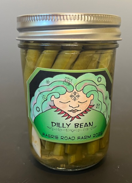 Pickled filet beans in a light brine with garlic and dill. Use as a garnish or side, great addition to a picnic.