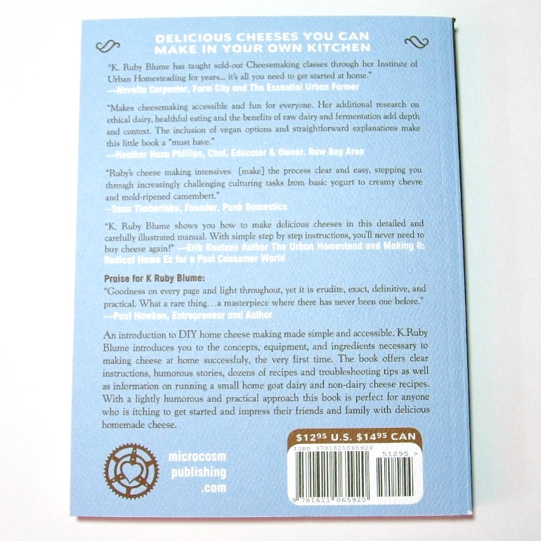 The only cheesemaking book that includes both dairy and vegan options, this do-it-yourself handbook introduces you to essential concepts, necessary equipment, and key ingredients to make delicious cheese at home. Starting with an introduction to milk, cheesemaking basics, and proper sanitization techniques, the book then covers a wide rage of homemade cheese options, from international favorites such queso fresco and mozzarella to soft and hard classics such as blue cheese, ricotta, and brie. Also includes recipes for yogurt, sour cream, cream cheese, buttermilk, and a variety of non dairy cheeses.