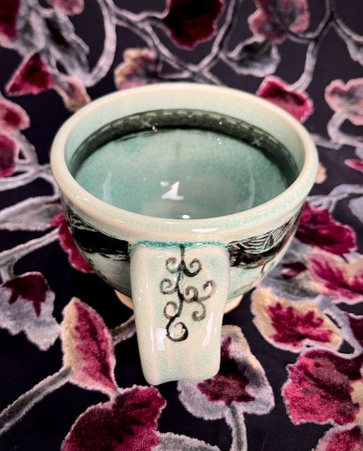 Ceramic Mug. Wheel thrown and decorated freehand.
