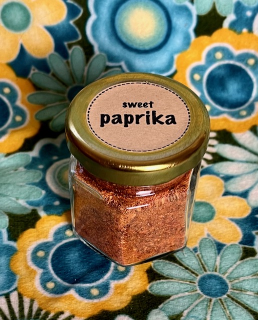 Mixed sweet red peppers organically grown outside in the hot Oregon sun. Lovingly dried and ground to a rich pungent powder. Fresh and araomatic, homegrown paprika adds flavor and zest to any recipe. Cute hexagon jar.