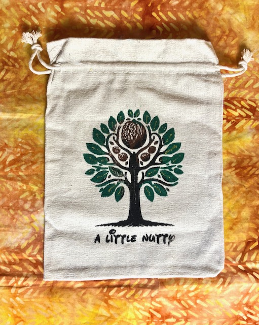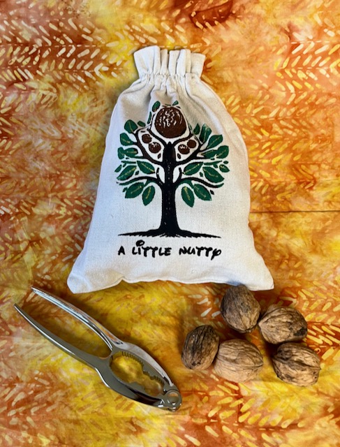 Delicious home grown walnuts in a hand silkscreened bag with a nut cracker tool included. A sweet gift for someone who already has everything.
